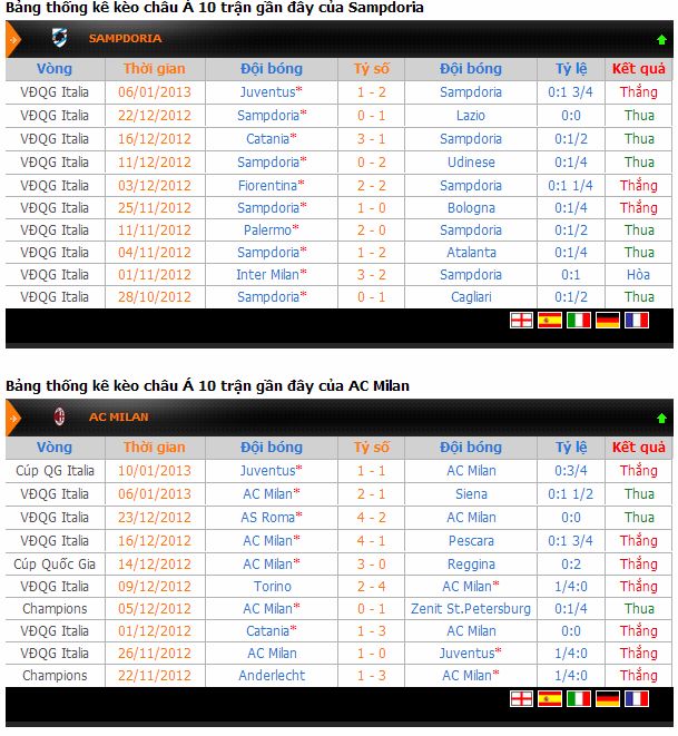 4/5 trận đã qua của Sampdoria cùng với 6 trận liên tiếp của AC Milan đều kết thúc với ít nhất 2 bàn thắng được ghi. Vậy nên khả năng trận đấu này xảy ra Tài là cao hơn cả.